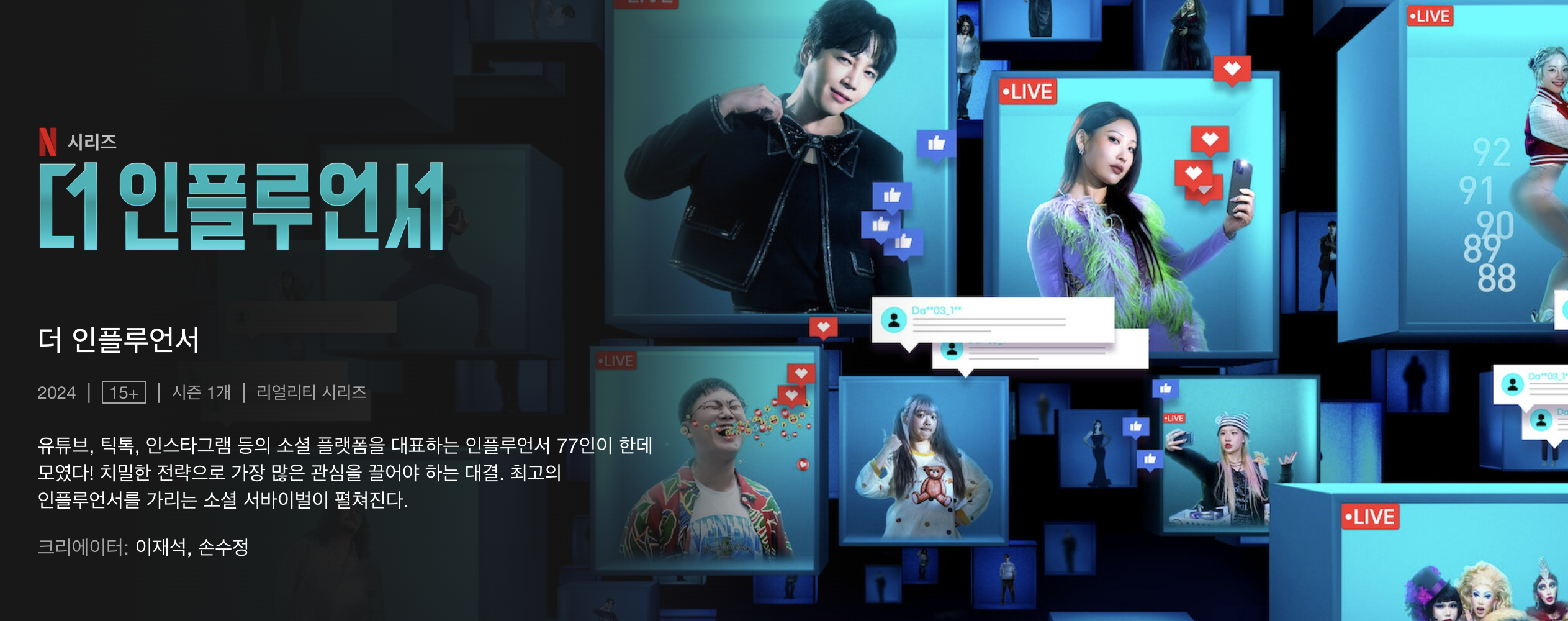 위와 같은 소개말로 현재 넷플릿스 코리아 1위를 달리고 있는 <더 인플루언서>.