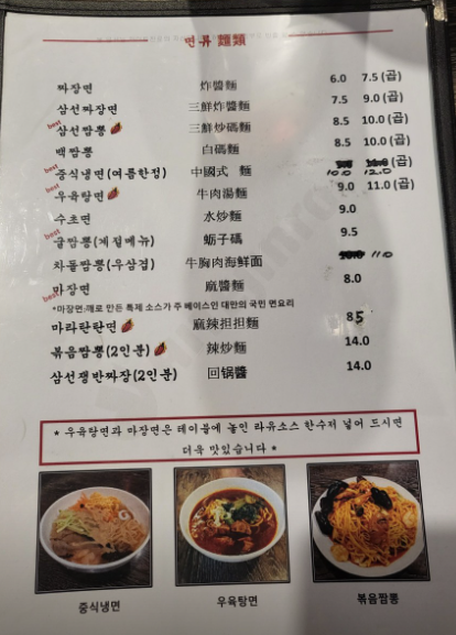 양미의 메뉴판 구성을 보면