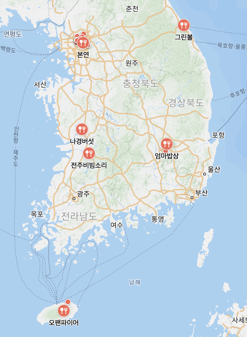 이렇게 전국에 분포한 흑백요리사의 식당이 지도로 표시됩니다!